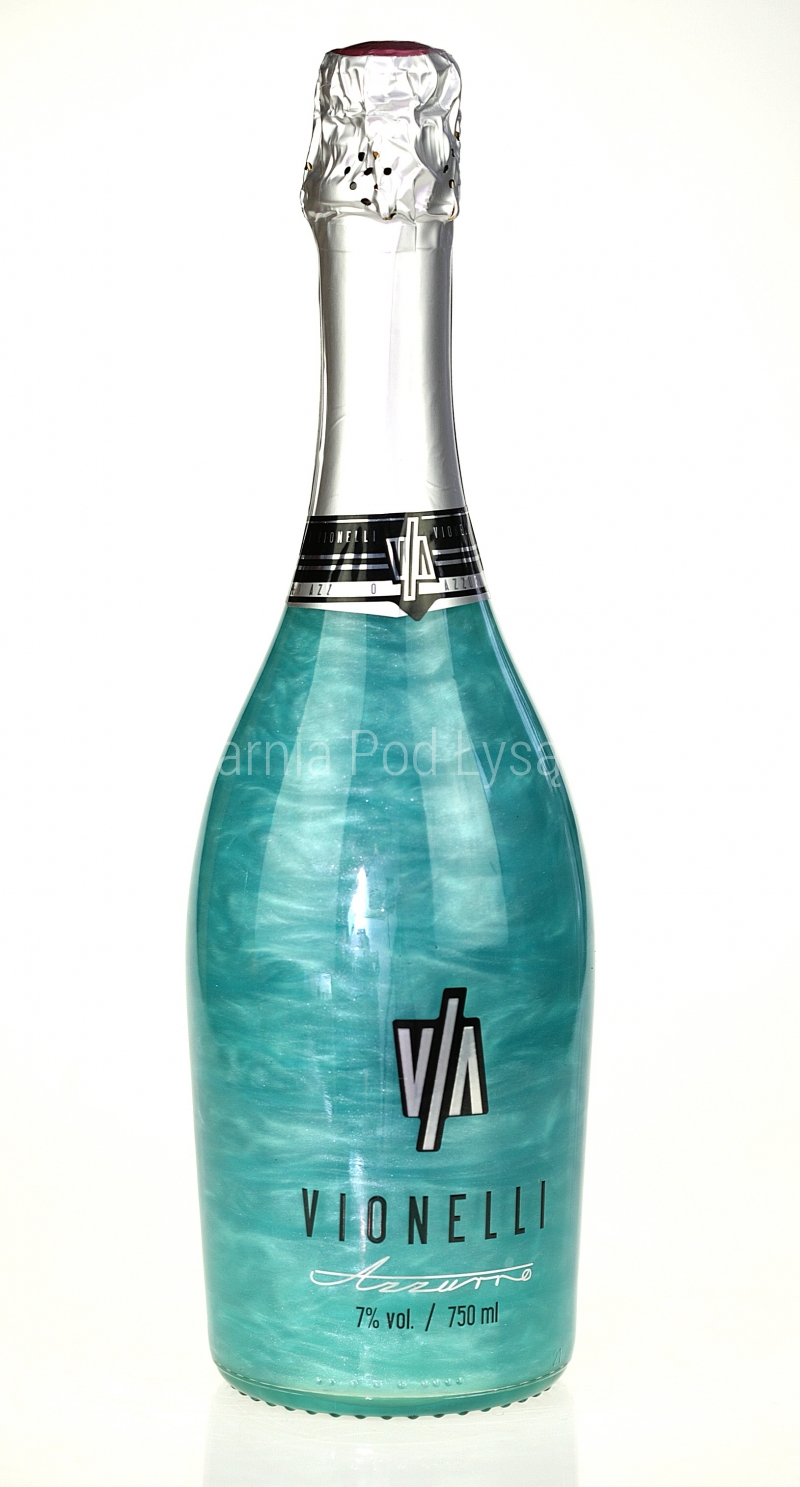 Vionelli Azurro - to aromatyzowany koktajl na bazie wina półwytrawnego. Od pierwszego momentu urzeka orzeźwiającą nutą tropikalnych owoców. Zachwyca piękną barwą i brokatem zamkniętym w butelce. Przed otwarciem należy odwrócić butelkę do góry dnem.
